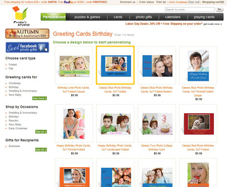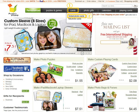 Hover the mouse-cursor over the cards tab and click folded photo cards