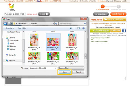 - Select the image file you wish to upload and click Open. Uploaded images are located inside the Photo Album box on the right side of the screen