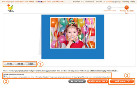 You will see a preview of your personalized item at this step. Click previous button at the bottom of the page if you need to make any changes to your design.